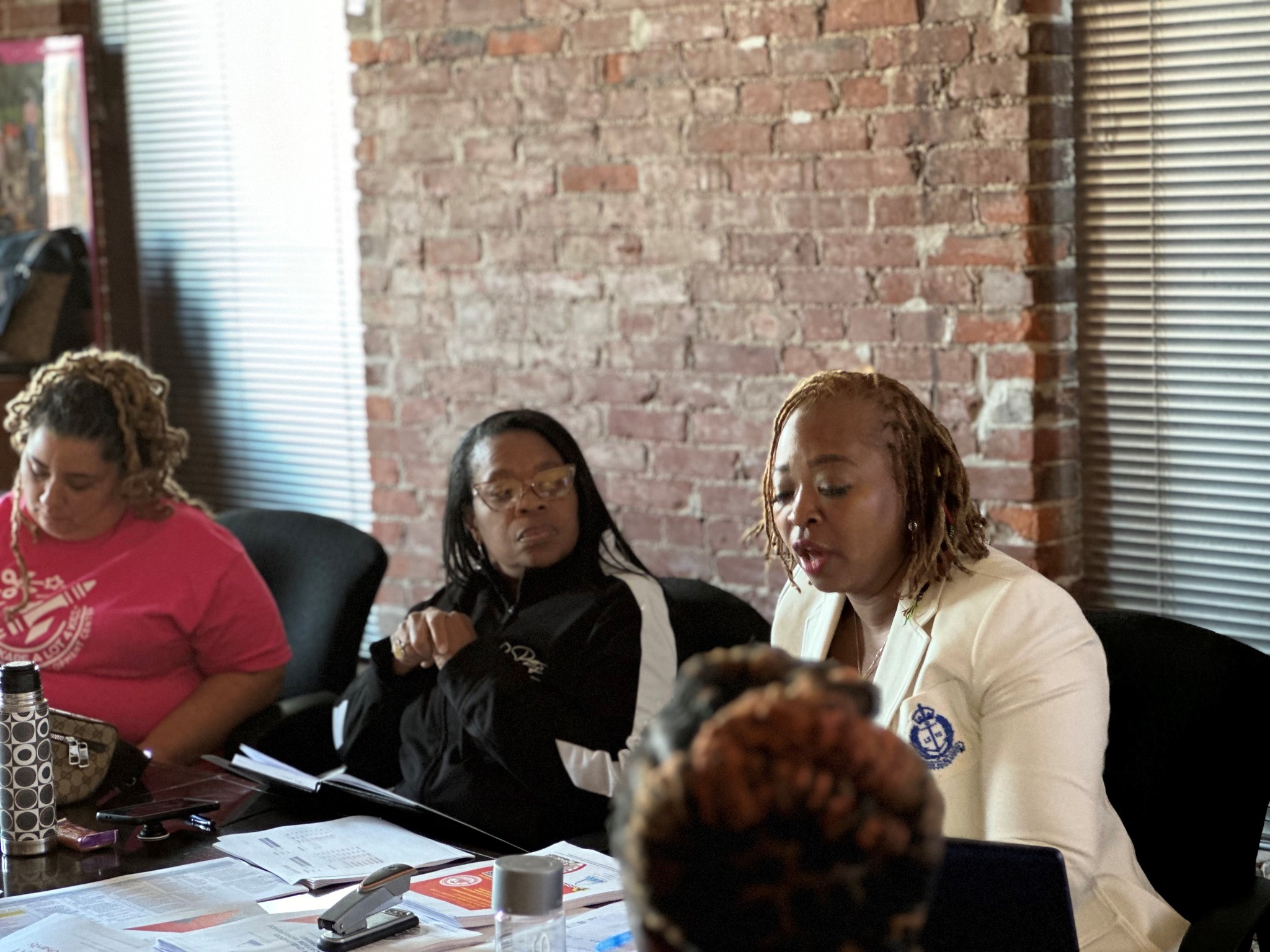 This past Wednesday, September 27th a number of Justine PETERSEN clients were able to gain invaluable tips and tricks on how to receive grant funding firsthand from an expert, JP Board Secretary/Member, Rochelle Bea. The event, which was hosted at JP’s headquarters, was so in-demand, spots to attend were all quickly claimed. As Founder of Beginning Futures, LLC, Rochelle (pictured below on the right) has vast experience in the area of grants, from the application process to securing funding. The first thing Rochelle wants anyone who’s applying for a grant to keep in mind is to not be intimidated by the process. While many applications may include a lot of questions or asks, they are usually straightforward. When they’re not, she encourages visiting the grant provider in-person if possible, or if it’s not to give them a call and ask questions for clarity. Also, don’t be discouraged if not everything is completely lined up; use terms like “TBD,” and “waiting to get funding for location,” “looking to hire” where appropriate. Rochelle also believes applying for a grant should not be a one-person job. “Have a team take sections to work on to pull the RFP together. For instance someone can do research, someone collects statistics, someone proofreads, etc.” In putting it together, make sure the story you’re trying to convey is authentic. Don’t feel like a story has to be made sad, as everyone loves a feel good story. Perhaps one of the most important things about the process to keep top of mind is the deadline. “Always be sure to get your application in on time. Not two minutes late, not two hours late, on time!” When the time comes to learn about whether you qualified for the grant, if the outcome is not the desired one, do not give up. View it as an opportunity to learn for the next one. We’re grateful for Rochelle’s awesome advice and time, and look forward to learning more from her in the future!