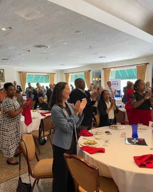 The luncheon was also a special moment for SBA St. Louis District Director Maureen Brinkley (pictured, right-most seated), who has given 55 years of service so far to the SBA. Starting at a young age with the SBA, Maureen talked about how she has loved every moment of serving with them since, stating “I’m able to minister the community through my role.” JP is most proud to call Maureen a friend of our organization, and excited to continue our partnership with her while she continues to lead the SBA’s efforts in St. Louis. JP CEO Rob Boyle said of the afternoon “this was a particularly special moment for Justine PETERSEN, as our partnership with the the SBA has made countless dreams come to realization for our clients across the St. Louis community. Being able to share in this alongside Maureen, who has been with us every step of the way, makes this all the more indelible. We’re incredibly grateful to Administrator Guzman for making the time to be here in St. Louis so we could showcase the amazing things small business owners are doing in our community.”